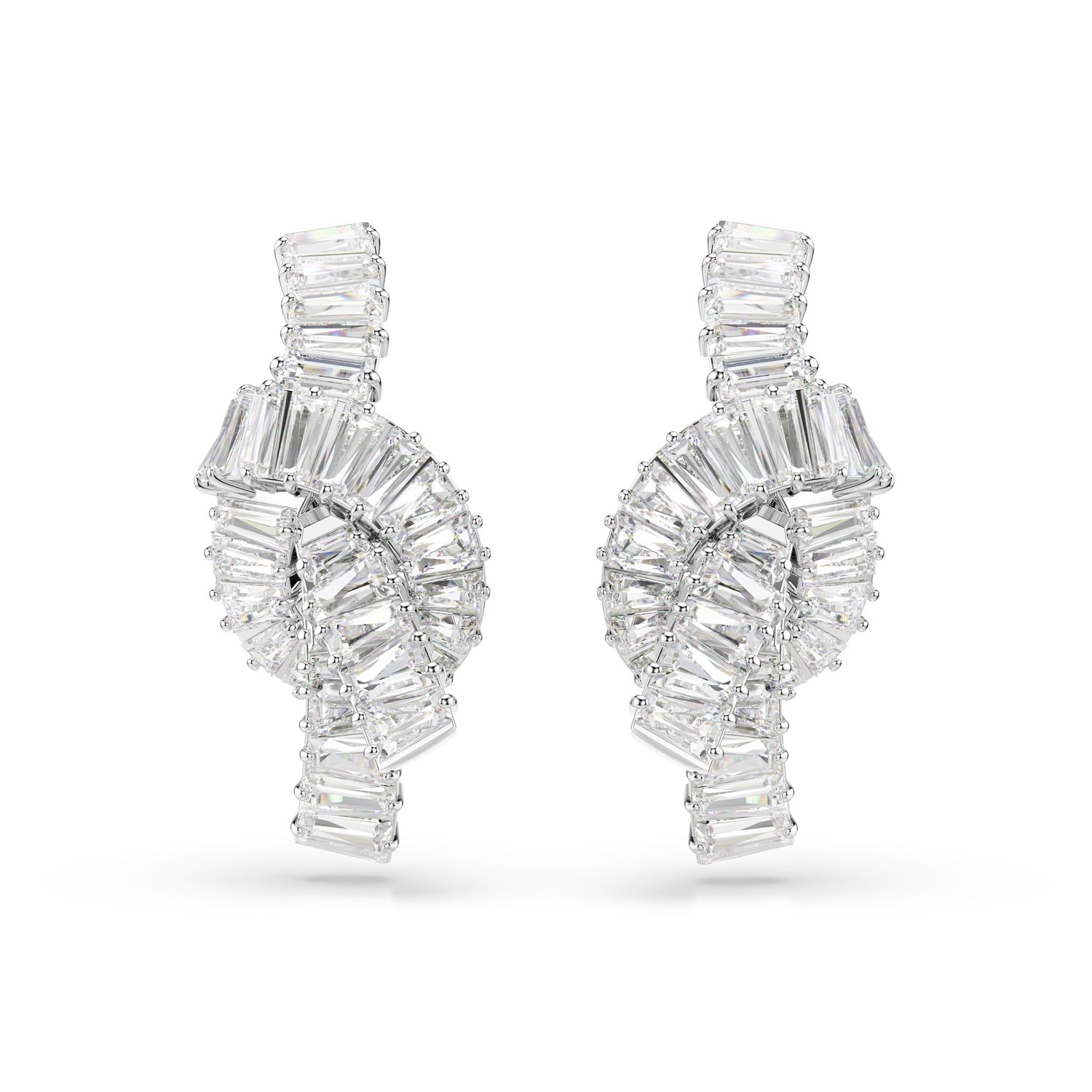 Συμβολίζοντας έναν άρρηκτο δεσμό, αυτά τα σκουλαρίκια Matrix διαθέτουν μοναδικό πλεκτό σχέδιο. Σε σχήμα κορδέλας, κάθε στριφτό μοτίβο έχει επιμετάλλωση ροδίου και κοσμείται εκλεπτυσμένα με Swarovski Zirconia κοπής baguette σε οδοντωτό δέσιμο. Επιλέξτε αυτά τα σκουλαρίκια όταν θέλετε να δείχνετε κομψές και συνδυάστε τα με ασορτί κοσμήματα Matrix για ολοκληρωμένη εμφάνιση.