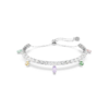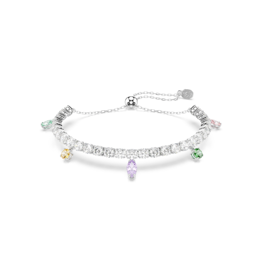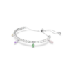 Λάμψτε όλη μέρα με τη χαρά που χαρίζουν οι αντανακλάσεις φωτός αυτού του βραχιολιού Swarovski. Το σχέδιο με επιμετάλλωση ροδίου διαθέτει μια ομοιόμορφη σειρά από διαφανή Swarovski Zirconia και μια ποικιλία από παστέλ αποχρώσεις που κρέμονται από κάτω σε διάφορες κοπές. Πυροδοτήστε τη δημιουργικότητα στο στυλ σας με αυτό το κόσμημα και φορέστε το με το ασορτί κολιέ από την ίδια οικογένεια.