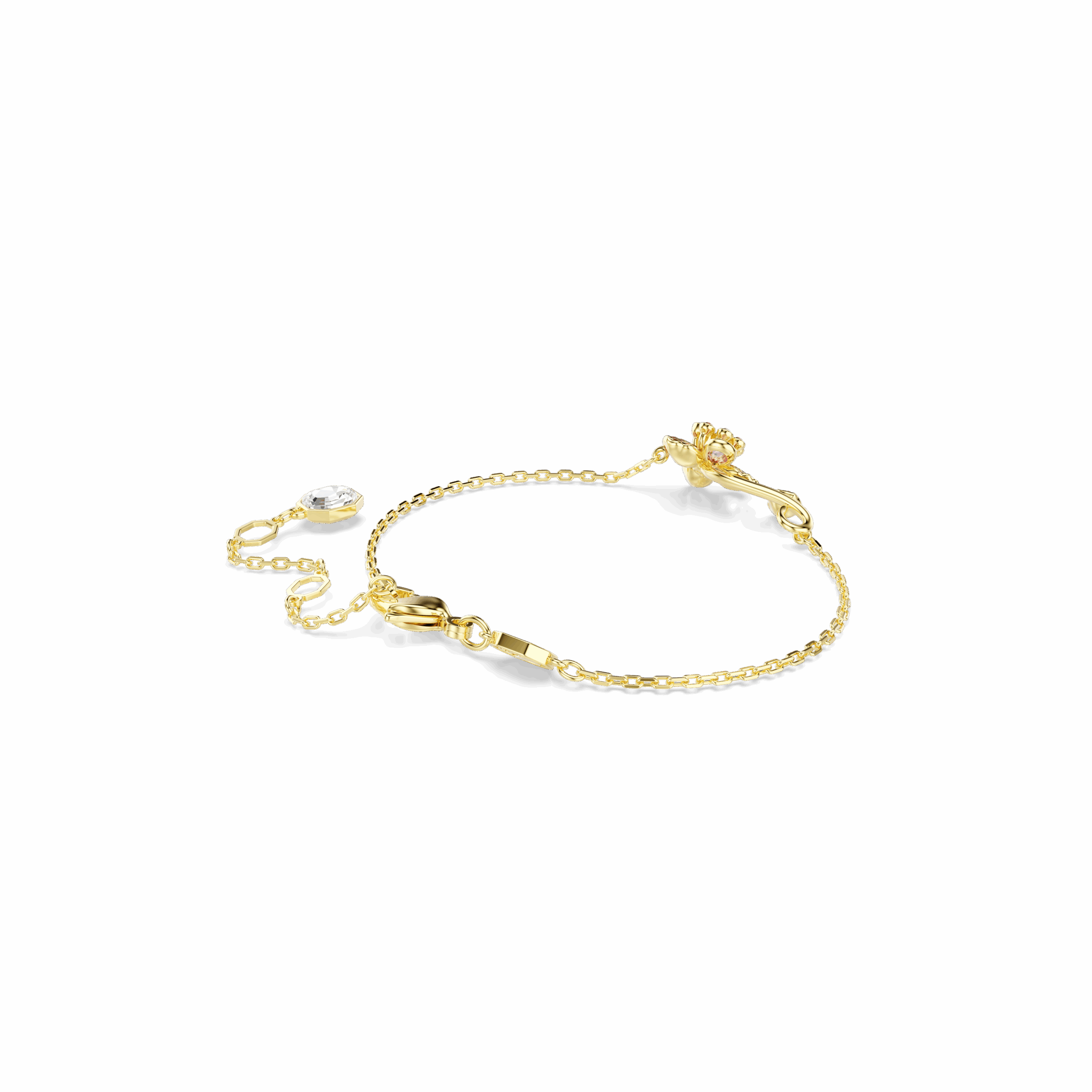 Δείξτε τη σύνδεσή σας με τη φύση με αυτό το φωτεινό και ντελικάτο βραχιόλι Idyllia. Πάνω σε μια αλυσίδα με επιμετάλλωση σε χρυσό τόνο, το κεντρικό μοτίβο σε σχήμα όμορφου λουλουδιού είναι φιλοτεχνημένο από κρύσταλλα σε διάφορες κοπές και απαλές αποχρώσεις, όπως και το φύλλο στον ελικοειδή μίσχο. Το κούμπωμα με ρεζέ και η επέκταση σάς προσφέρουν τη δυνατότητα να προσαρμόζετε αυτό το βραχιόλι στο μέγεθός σας. Φορέστε το μαζί με άλλα υπέροχα κομμάτια από τον κήπο της Idyllia για ασορτί εμφάνιση.