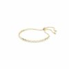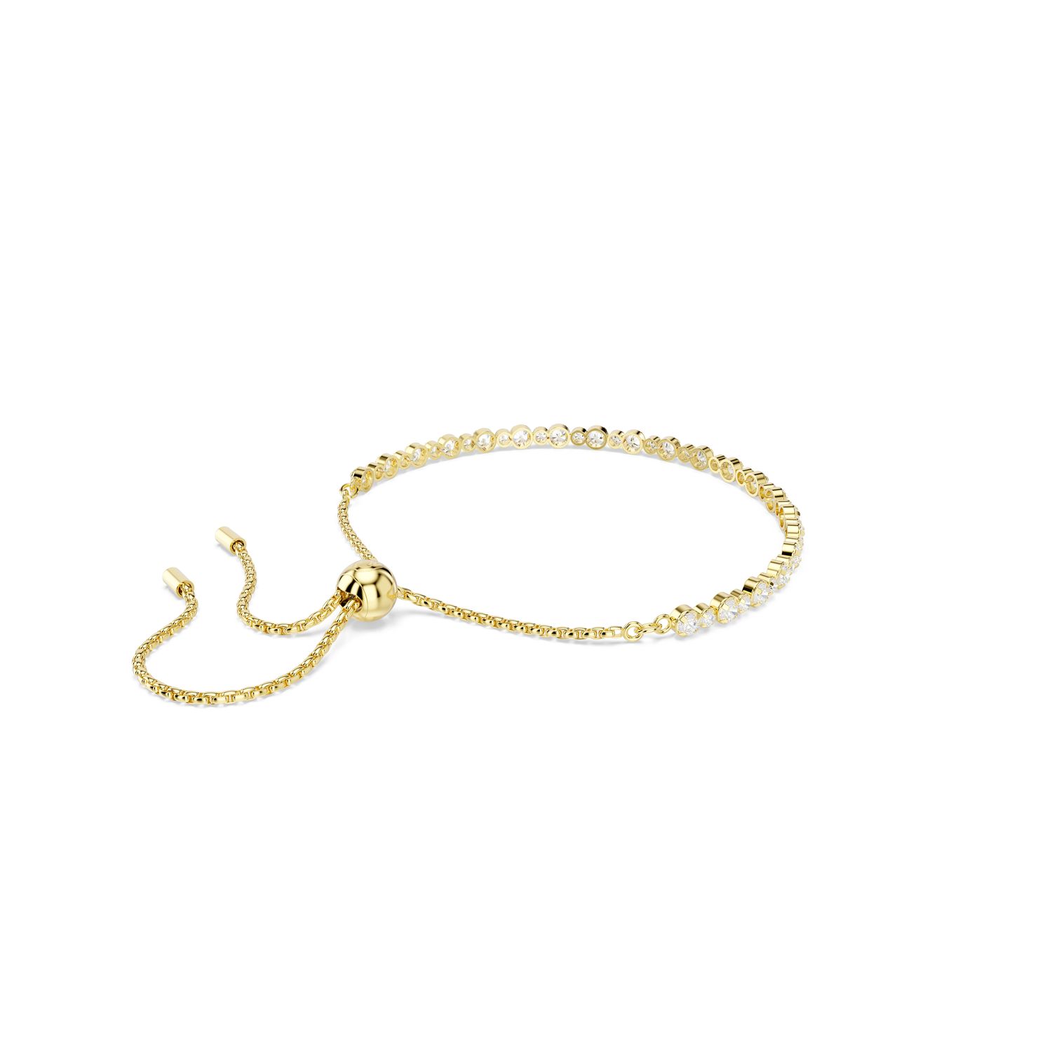 Αυτό το ντελικάτο βραχιόλι με αλυσίδα με υποδοχές, γεμάτο διακριτική κομψότητα και διαχρονική γοητεία, αποτελεί το ιδανικό δώρο για εσάς ή για ένα αγαπημένο σας πρόσωπο. Το σχέδιο συνδυάζει διαφανή Swarovski Zirconia και επιμετάλλωση σε χρυσό τόνο, ενώ ολοκληρώνεται με ρυθμιζόμενο συρόμενο κούμπωμα που προσαρμόζεται σε κάθε μέγεθος καρπού. Θα συντροφεύσει ιδανικά τα καθημερινά σας σύνολα, ενώ συνδυάζεται εύκολα με άλλα βραχιόλια χαρίζοντας ολοκληρωμένη εμφάνιση πολυτέλειας.