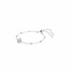 Αυτό το καινοτόμο βραχιόλι μπορεί να φορεθεί με δύο μοναδικούς τρόπους. Η αλυσίδα με επιμετάλλωση ροδίου διαθέτει συρόμενο μηχανισμό για εύκολη προσαρμογή του μεγέθους και είναι διακοσμημένη με μεταλλικές σφαίρες και ένα απαστράπτον μοτίβο διπλής όψης. Απλώς γυρίστε το βραχιόλι από την άλλη πλευρά για να προβάλετε μια διαφορετική διάταξη κρυστάλλων στρογγυλής κοπής. Συνδυάστε το με άλλα κομμάτια Una Angelic για εμφάνιση απόλυτης λάμψης.