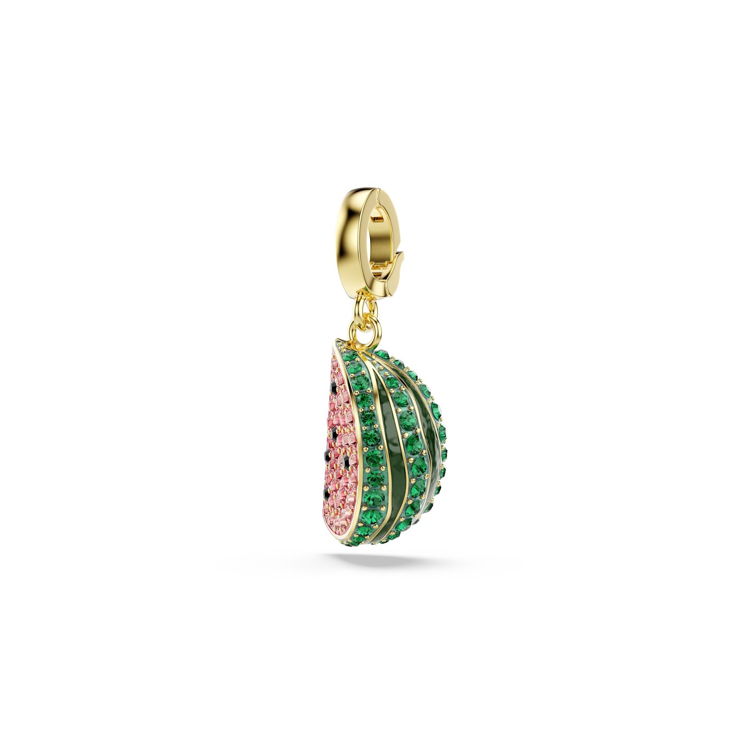 Αυτό το γούρι σε σχήμα φέτας καρπουζιού προσθέτει μια προσωπική πινελιά στο καθημερινό σας στυλ και είναι ιδανικό για όσους αγαπούν το καλοκαίρι. Διακοσμημένη με ροζ και πράσινα κρύσταλλα pavé, καθώς και με ρεαλιστικούς σπόρους από μαύρα Swarovski ReCreated™ crystals, η δημιουργία σε χρυσό τόνο διαθέτει ειδικά σχεδιασμένο κούμπωμα, που σας προσφέρει τη δυνατότητα να τοποθετείτε το γούρι σε διάφορα κολιέ και βραχιόλια.