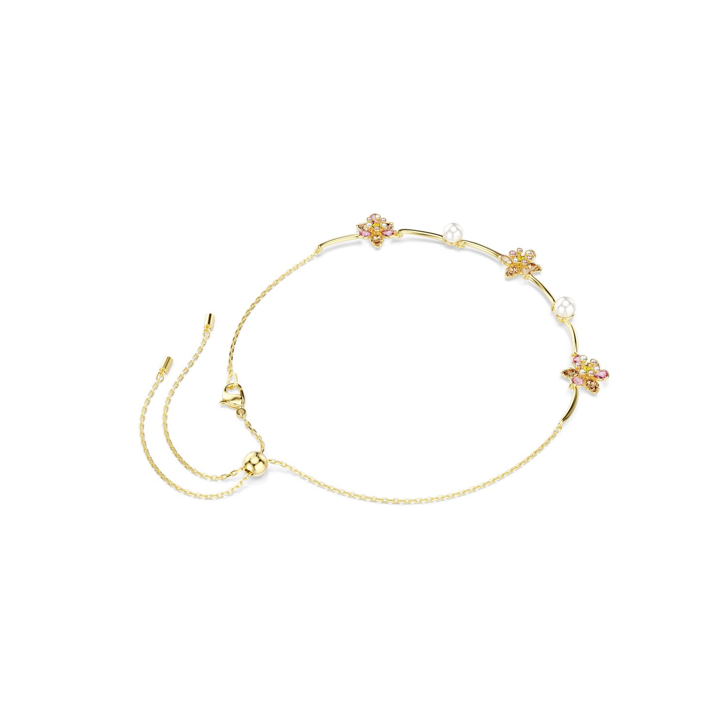 Η φύση και η πολυτέλεια συνδυάζονται σε αυτό το ντελικάτο αλλά εντυπωσιακό κολιέ Idyllia. Με ρυθμιζόμενη αλυσίδα, το σχέδιο all-around περιλαμβάνει μπάρες με επιμετάλλωση σε χρυσό τόνο, διανθισμένες με Swarovski Crystal Pearls και τρία λουλούδια, καθένα από τα οποία είναι φιλοτεχνημένο με κρύσταλλα σε διάφορες κοπές και απαλές αποχρώσεις. Προσφέρει μια πινελιά χαρούμενης κομψότητας και συνδυάζεται τέλεια με ασορτί βραχιόλι, καρφίτσα ή σκουλαρίκια.