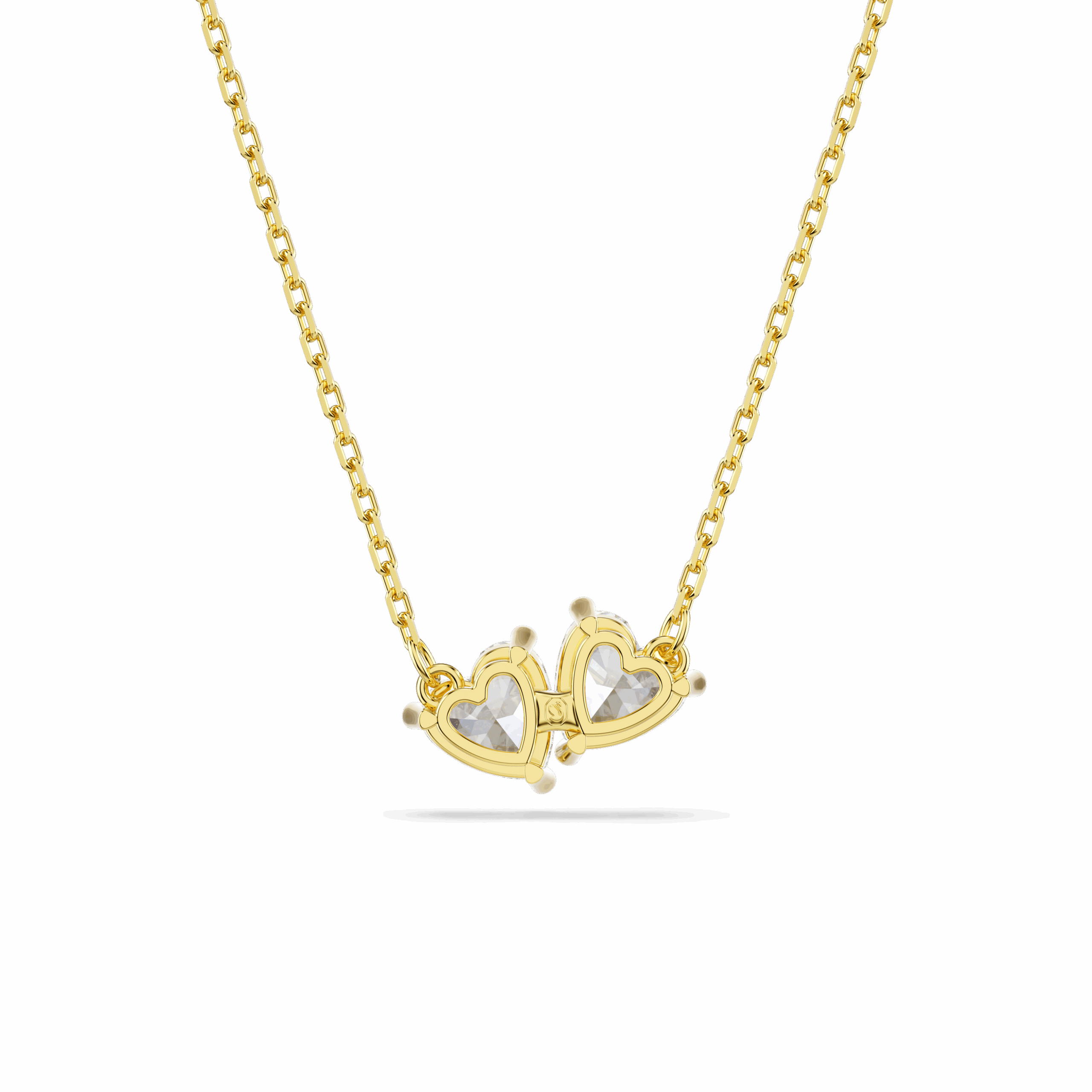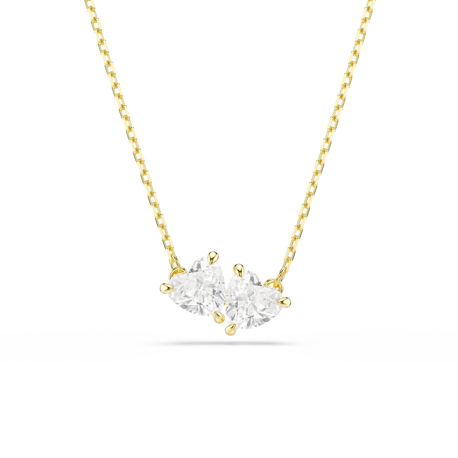 Αυτό το κολιέ Swarovski από την οικογένεια Mesmera συνδυάζει το κλασικό σχέδιο με μοντέρνες πινελιές. Διακοσμημένο με όμορφα Swarovski Zirconia σε σχήμα δίδυμων καρδιών, το σχέδιο ολοκληρώνεται με την επιμετάλλωση σε χρυσό τόνο και τη διακριτική κομψότητα της αλυσίδας του. Αυτό το γοητευτικό κολιέ είναι το ιδανικό ρομαντικό δώρο για ένα αγαπημένο σας πρόσωπο.