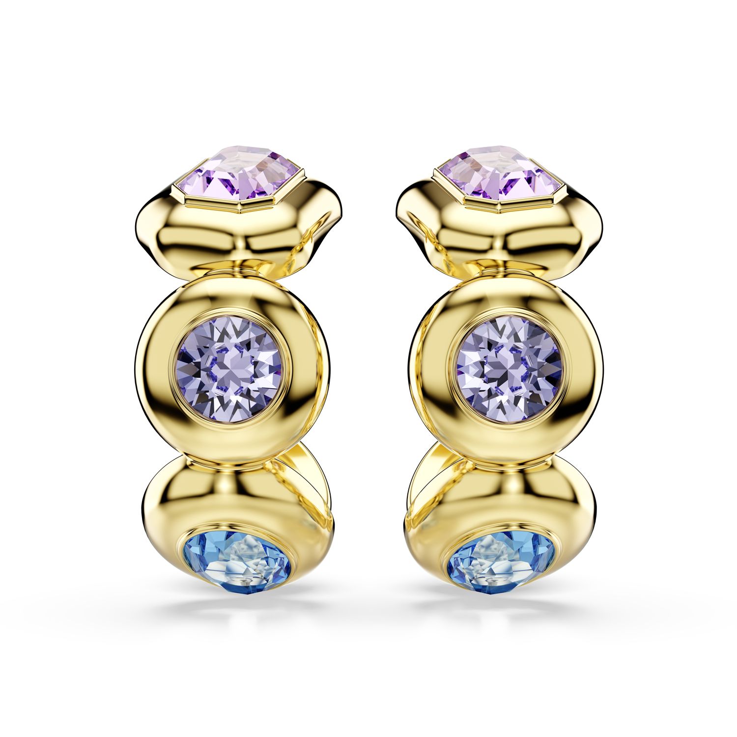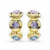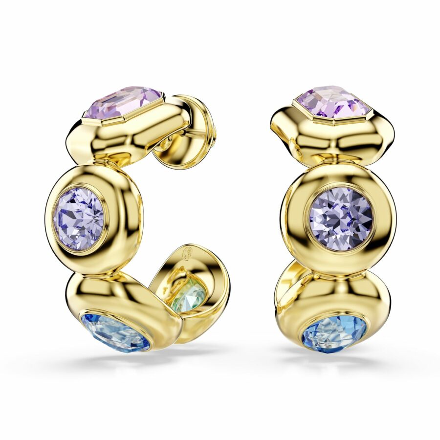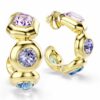 Ανακαλύψτε την εκδοχή της οικογένειας Gema στα κλασικά σκουλαρίκια κρίκους. Πολύχρωμο και αντισυμβατικό, κάθε κομμάτι με επιμετάλλωση σε χρυσό τόνο είναι διακοσμημένο με τέσσερα μεγάλα κρύσταλλα σε τολμηρό δέσιμο σε στεφάνη. Το πλήθος διαφορετικών κοπών και αποχρώσεων περιλαμβάνει Swarovski ReCreated™ crystals στο Ice Blue, που συνδυάζονται άψογα με τις υπόλοιπες αποχρώσεις του ροζ, του μοβ και του πράσινου.