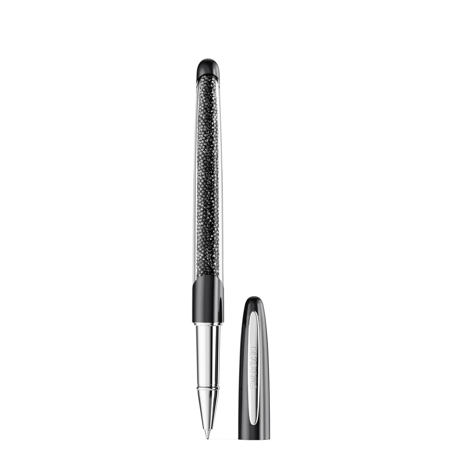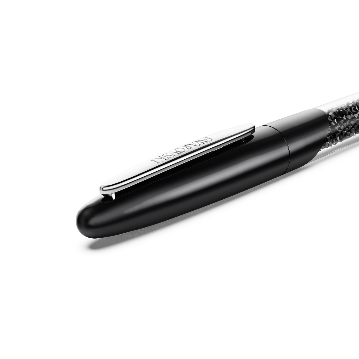 Κάτι παραπάνω από ένα απλό όργανο γραφής, αυτό το στυλό rollerball Crystalline Nova περιέχει περίπου 400 μαύρα κρύσταλλα, τοποθετημένα με τη μοναδική τεχνική Crystalline. Ένα κλιπ με επιμετάλλωση σε ασημί τόνο αναδεικνύει το γυαλιστερό σώμα και το καπάκι σε μαύρο χρώμα. Αυτό το στυλό rollerball σε λεπτή γραμμή θα μπορούσε να γίνει ένα δώρο με νόημα. Ανταλλακτικά για μαύρο και μπλε μελάνι είναι διαθέσιμα προς αγορά στα καταστήματα Swarovski.