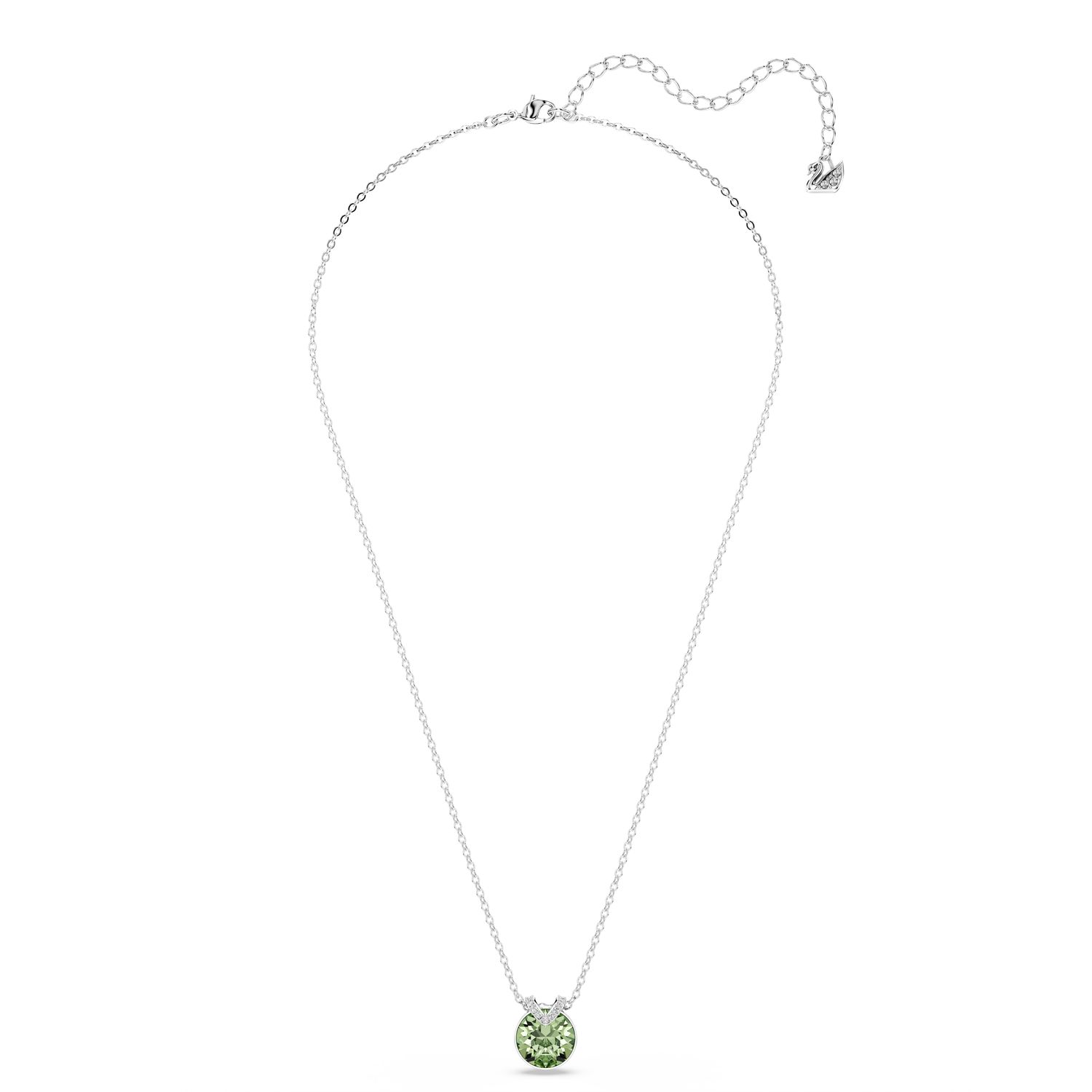 Αυτό το μαγευτικό μενταγιόν θα αιχμαλωτίσει τα βλέμματα, χάρη στο κεντρικό πράσινο κρύσταλλό του, που είναι δεμένο σε επιμετάλλωση ροδίου. Η διακόσμηση με λαμπερό pavé προσδίδει ένα επιπλέον επίπεδο ομορφιάς, ενώ η ντελικάτη αλυσίδα αποπνέει απόλυτη κομψότητα. Συνδυάστε το με τα ασορτί σκουλαρίκια για μαγικό συνδυασμό.