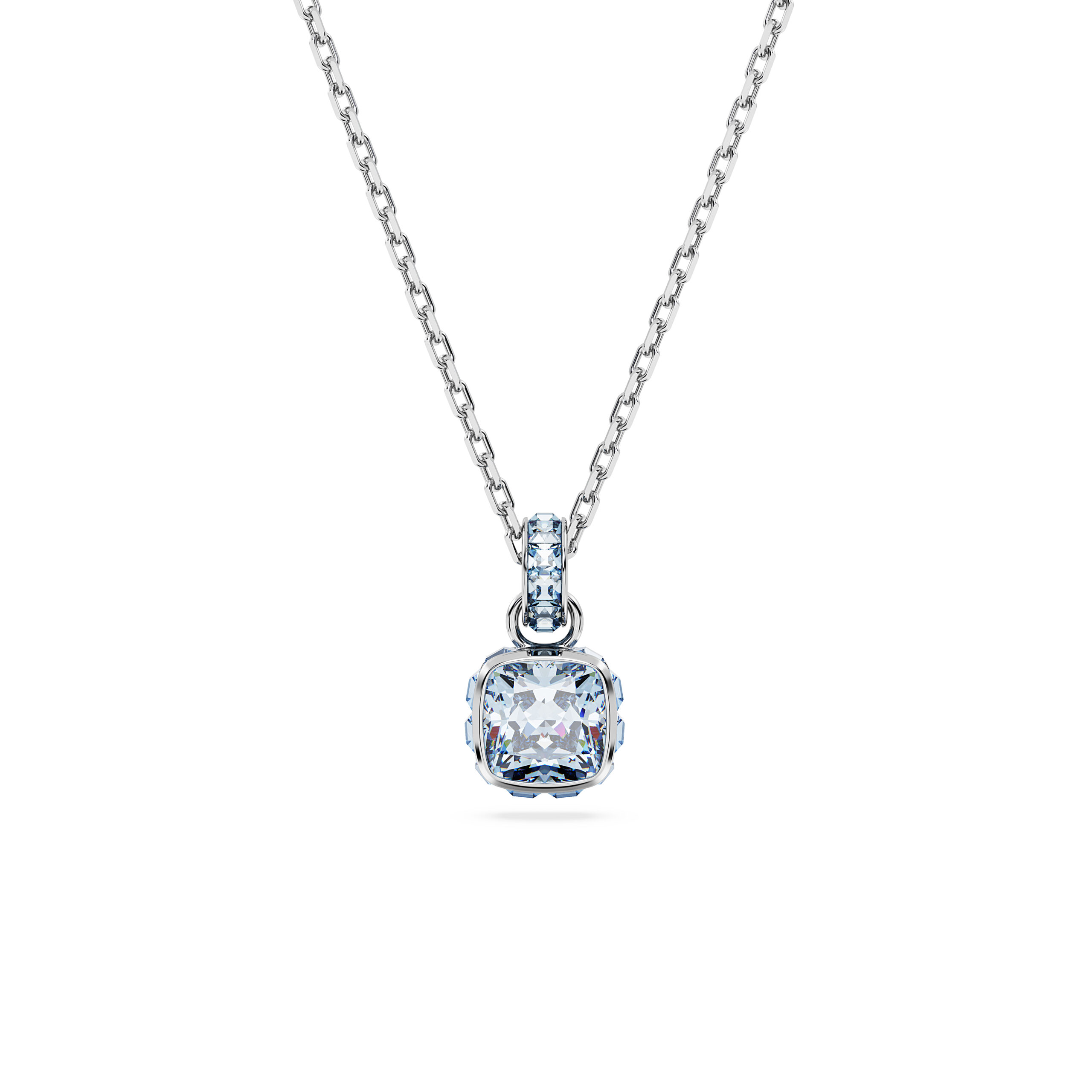 Αυτό το λεπτό μενταγιόν είναι εμπνευσμένο από τη γενέθλια λίθο του Μαρτίου. Αιωρείται από μια ντελικάτη αλυσίδα με αστραφτερό κρίκο κρυστάλλων, το επιροδιωμένο κόσμημα διαθέτει μια μονή πέτρα τετραγωνικής κοπής σε γαλάζια απόχρωση aquamarine, αποτυπώνοντας τη γαλήνη και την ηρεμία. Αυτό το γεμάτο νόημα σχέδιο αποτελεί ένα μαγικό δώρο γενεθλίων ή μπορεί να φορεθεί για να γιορτάσετε ό,τι έχει σημασία για εσάς.