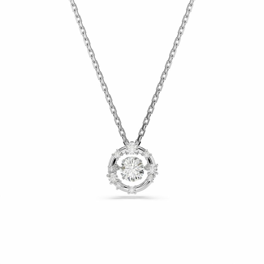 Αυτό το μενταγιόν Constella, που λάμπει σαν τον έναστρο ουρανό, είναι ένα λαμπερό παράδειγμα της υπεροχής της Swarovski όσον αφορά τον χειρισμό του φωτός. Το σχέδιο με επιμετάλλωση ροδίου διαθέτει μια κινούμενη πέτρα στο κέντρο, η οποία δημιουργεί ατελείωτες αντανακλάσεις, ενώ μικρότερα Swarovski Zirconia είναι τοποθετημένα γύρω από το μεταλλικό πλαίσιο. Φορέστε αυτό το μενταγιόν με το ασορτί άκαμπτο βραχιόλι ή τα σκουλαρίκια για να απογειώσετε το στυλ σας ώς το διάστημα.