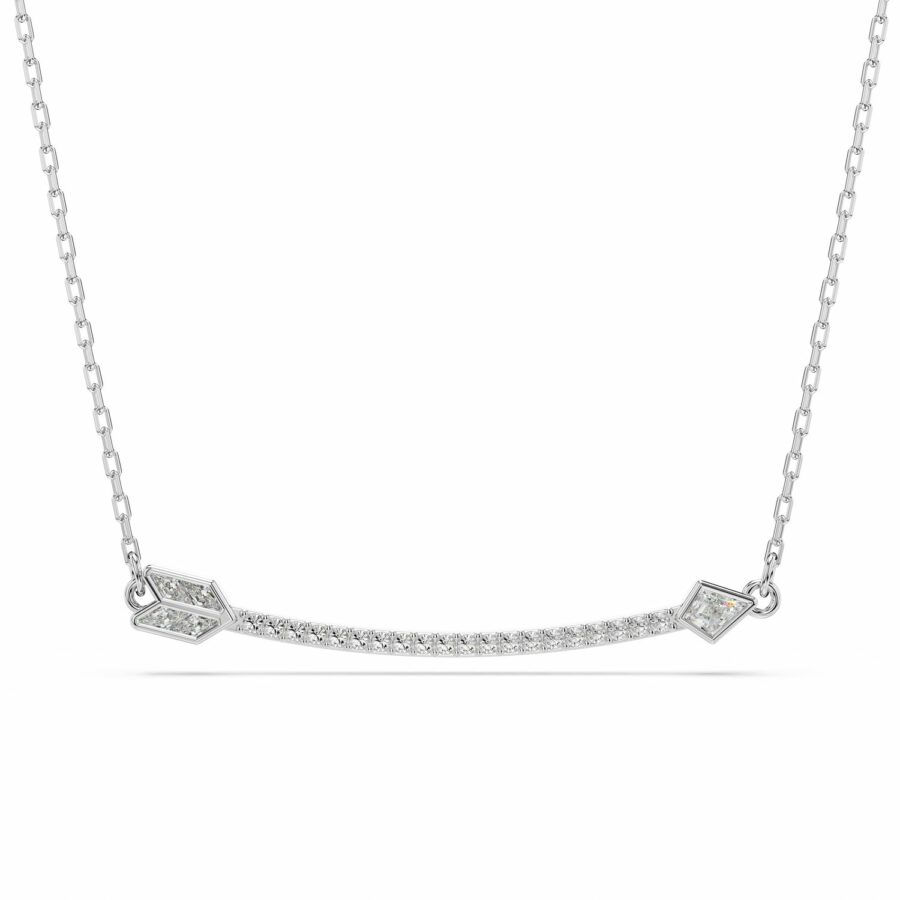 Εμπνευσμένο από τα βέλη του Θεού Έρωτα, αυτό το κολιέ με επιμετάλλωση ροδίου είναι μια μοναδική επιλογή styling.
