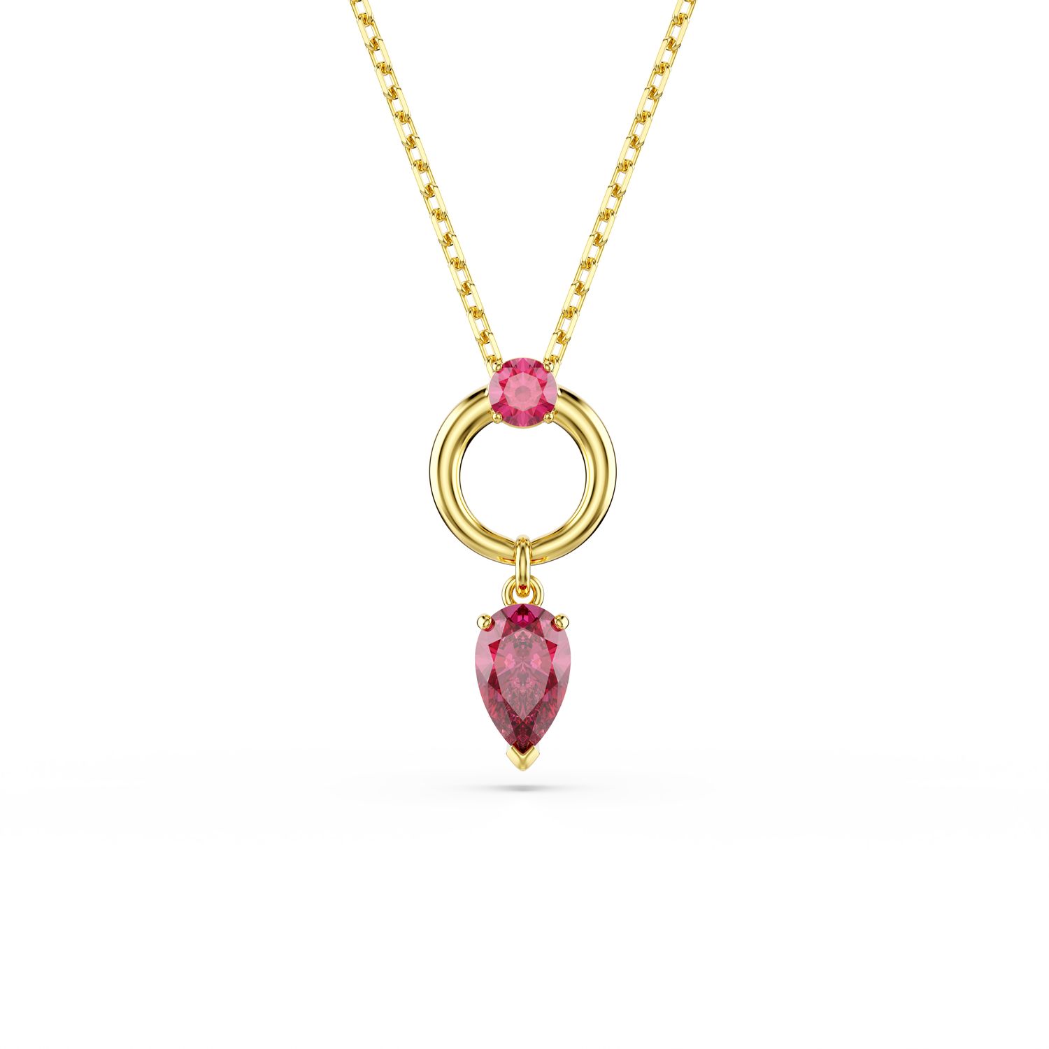 Αυτό το μενταγιόν Mesmera συνδυάζει το χρώμα με τον εκλεπτυσμό, δημιουργώντας ένα εντυπωσιακό κόσμημα για καθημερινή χρήση. Το λαμπερό μοτίβο περιλαμβάνει ένα Swarovski Zirconia κοπής pear σε κόκκινο χρώμα, το οποίο είναι συνδεδεμένο με έναν πολυτελή κρίκο με επιμετάλλωση σε χρυσό τόνο. Στο κέντρο έχει τοποθετηθεί ένα επιπλέον Swarovski Zirconia στρογγυλής κοπής, ενώ ο συρόμενος μηχανισμός στην αλυσίδα προσφέρει εύκολη ρύθμιση του μενταγιόν στο επιθυμητό μήκος.