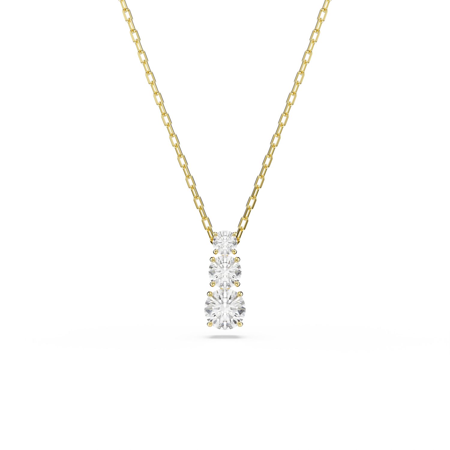 Εμπνευσμένο από την ιδέα της αιώνιας αγάπης, αυτό το ρομαντικό μενταγιόν είναι διαχρονικά κομψό. Τα τρία διαφανή Swarovski Zirconia κρέμονται μεγαλοπρεπώς από μια αλυσίδα με επιμετάλλωση σε χρυσό τόνο, δημιουργώντας ένα κόσμημα γεμάτο συναίσθημα. Είναι το τέλειο δώρο για ένα αγαπημένο σας πρόσωπο και μπορεί να φορεθεί με ένα ασορτί ζευγάρι τρυπητά σκουλαρίκια ή ένα δαχτυλίδι.