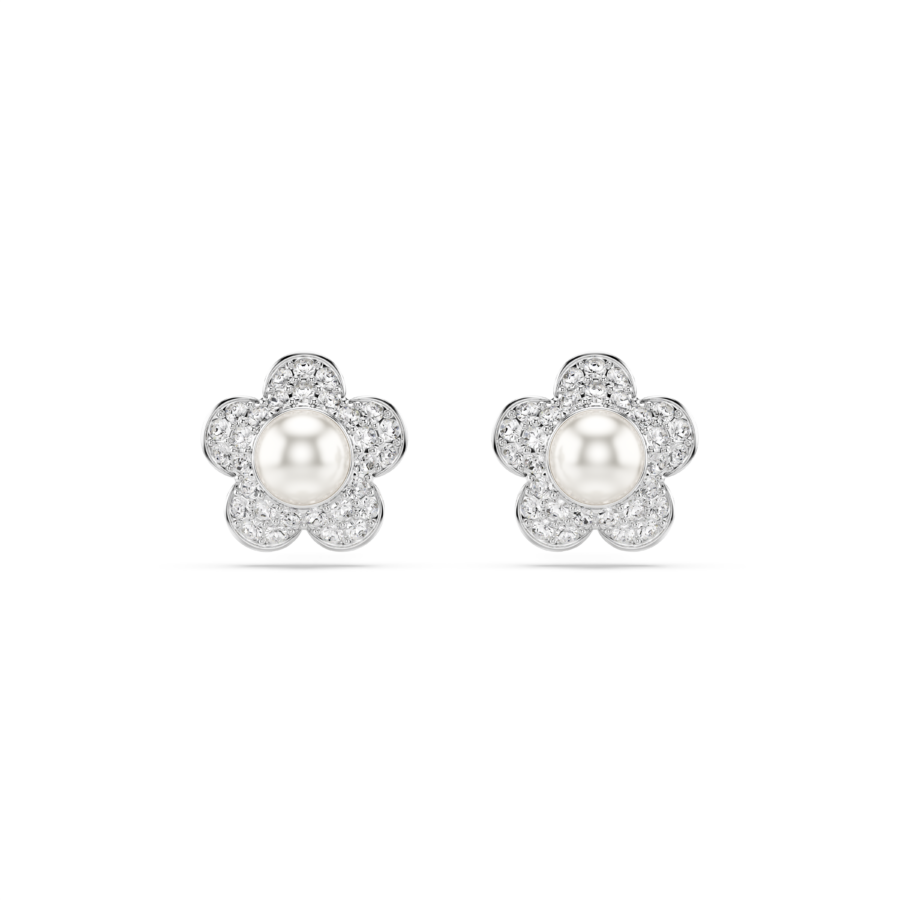 Σκουλαρίκια με καραφάκι Ariana Grande x Swarovski, Crystal pearl, Στρογγυλή κοπή, Λουλούδι, Λευκά, Επιμετάλλωση ροδίου