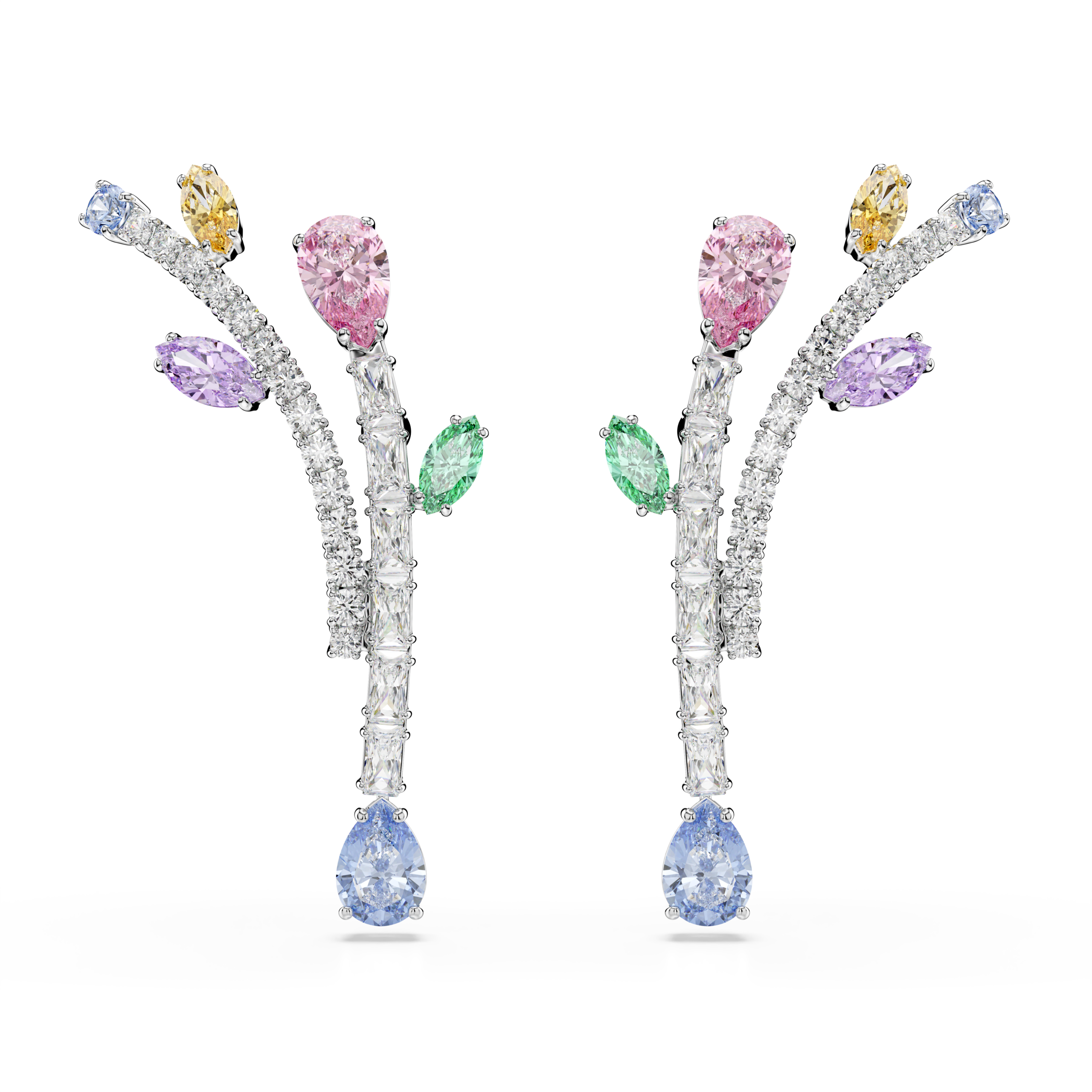 Φιλοτεχνημένα με τη χαρακτηριστική ακρίβεια της Swarovski, αυτά τα σκουλαρίκια με επιμετάλλωση ροδίου είναι μια έκρηξη χαράς. Οι μίσχοι των μπουκέτων είναι διακοσμημένοι με διαφανή Swarovski Zirconia σε στρογγυλή και baguette κοπή, ενώ μια ποικιλία από φύλλα σε φαντεζί κοπές ζωντανεύουν το κόσμημα με παστέλ χρώμα. Φορέστε αυτά τα σκουλαρίκια με ασορτί κομμάτια από την ίδια οικογένεια για να προσδώσετε δημιουργικότητα στο στυλ σας.