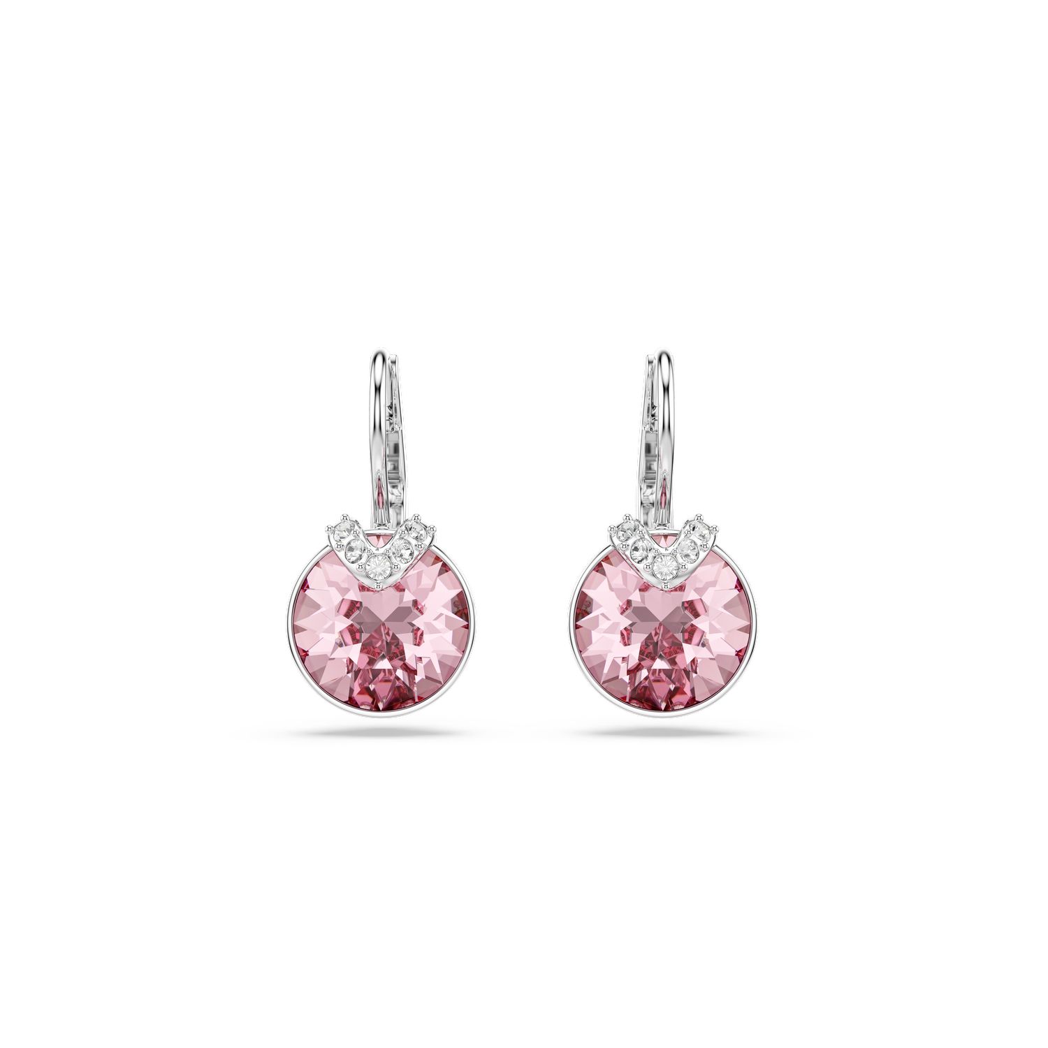 Σκουλαρίκια-σταγόνα Bella V, Στρογγυλή κοπή, Ροζ, Επιμετάλλωση ροδίου