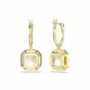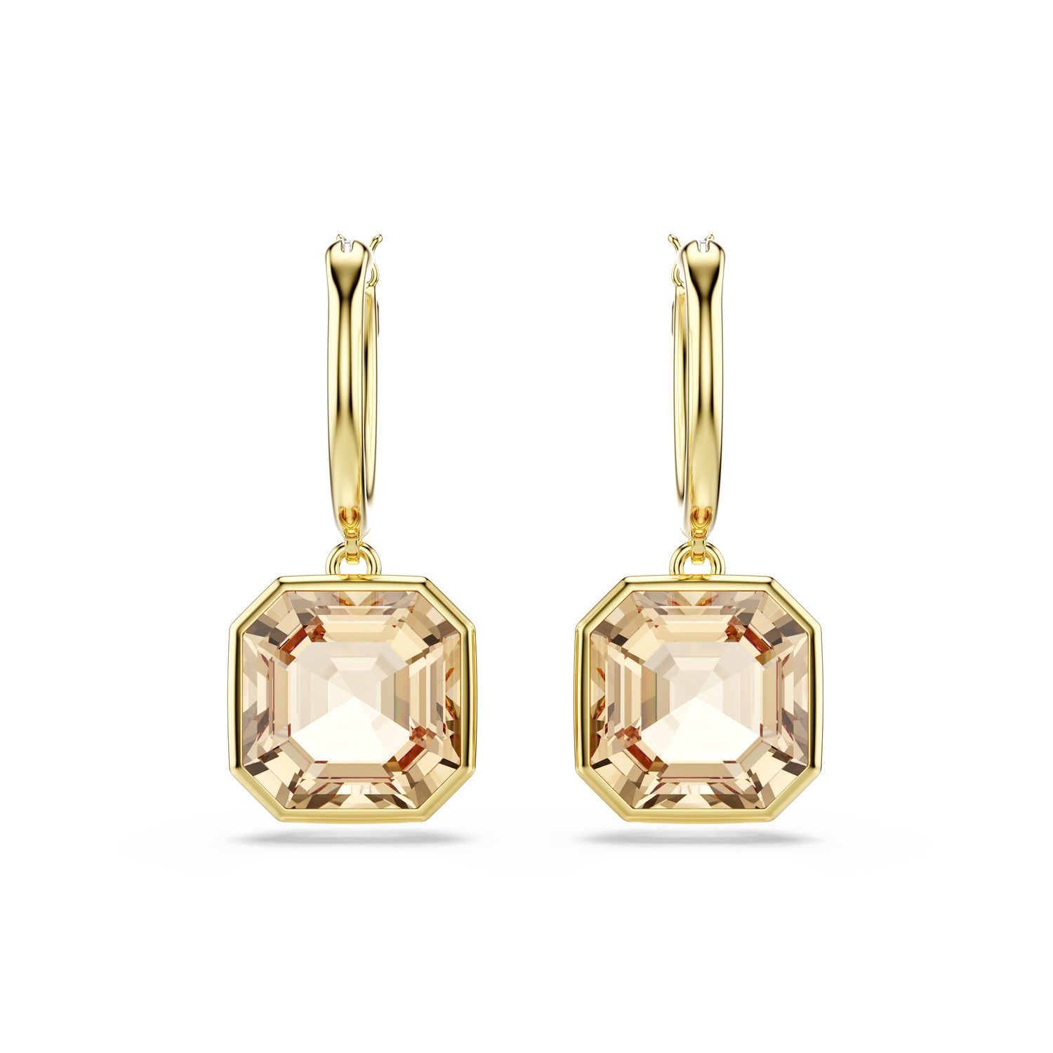 Απολαύστε τη ζεστασιά της εποχής με αυτά τα έντονα σκουλαρίκια Millenia. Κάθε εκλεπτυσμένο κόσμημα διαθέτει επιμετάλλωση σε χρυσό τόνο και κρύσταλλα κοπής asscher στο ζωηρό χρώμα της καραμέλας με δέσιμο σε στεφάνη. Ιδανικά για μια πινελιά καθημερινής κομψότητας, αυτά τα σκουλαρίκια μπορούν να φορεθούν μαζί με ασορτί κομμάτια από την ίδια οικογένεια.