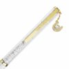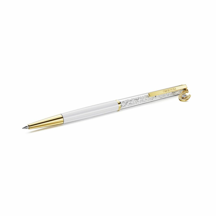 Αυτό το λεπτό στυλό φιλοξενεί περίπου 400 διαφανή κρύσταλλα, τα οποία είναι ορατά μέσα από το μακρύ διάφανο πλαίσιο. Εκτός από το γυαλιστερό σώμα σε λευκό χρώμα, το στυλό διαθέτει φινίρισμα σε χρυσό τόνο και ένα γούρι σε σχήμα πετάλου, το οποίο ιστορικά αποτελεί αγαπημένο σύμβολο προστασίας και ευημερίας σε πολλούς πολιτισμούς. Το διαχρονικό του νόημα καθιστά αυτό το στυλό ένα προσεγμένο δώρο για πολλές περιστάσεις, είτε για να ευχηθείτε σε κάποιον επιτυχία, είτε για να γιορτάσετε ένα νέο ξεκίνημα ή απλώς για να μοιραστείτε ένα σύμβολο θετικότητας και φροντίδας. Ανταλλακτικά για μπλε και μαύρο μελάνι είναι διαθέσιμα προς αγορά στα καταστήματα Swarovski.