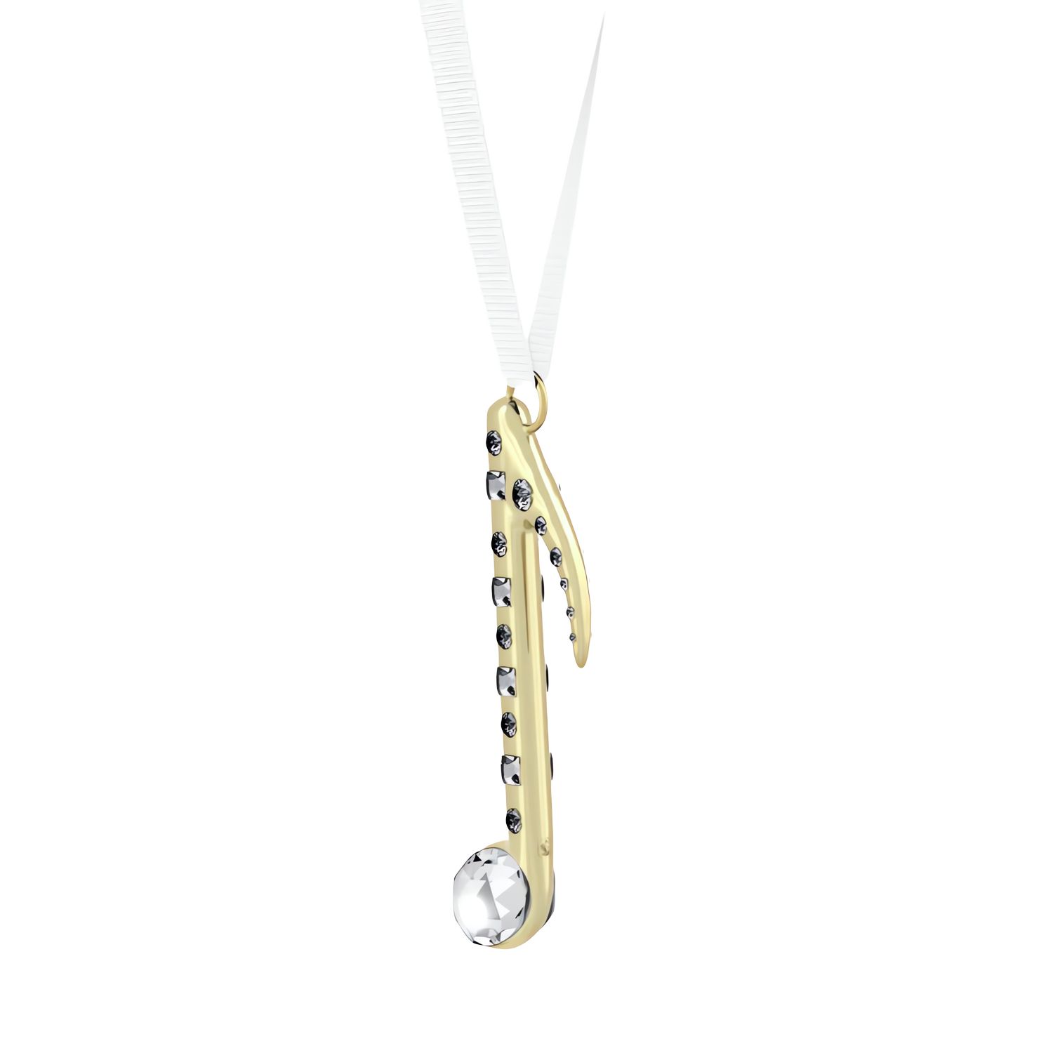 Φέρτε την αρμονία στην εορταστική διακόσμησή σας με αυτό το εκλεπτυσμένο στολίδι σε σχήμα νότας μουσικής. Περασμένο σε λευκή κορδέλα γκρο, το πολυτελές στολίδι είναι φιλοτεχνημένο από γυαλιστερό μέταλλο σε χρυσό σαμπανί τόνο και διακοσμημένο με διαφανή κρύσταλλα σε κάθε πλευρά. Σχεδιασμένο για να δημιουργεί όμορφες αντανακλάσεις φωτός καθ’ όλη τη διάρκεια των γιορτών, αποτελεί ένα μοναδικό δώρο για όποιον λατρεύει τις χαρούμενες μελωδίες. Διακοσμητικό αντικείμενο. Δεν είναι παιχνίδι. Δεν είναι κατάλληλο για παιδιά κάτω των 15 ετών.