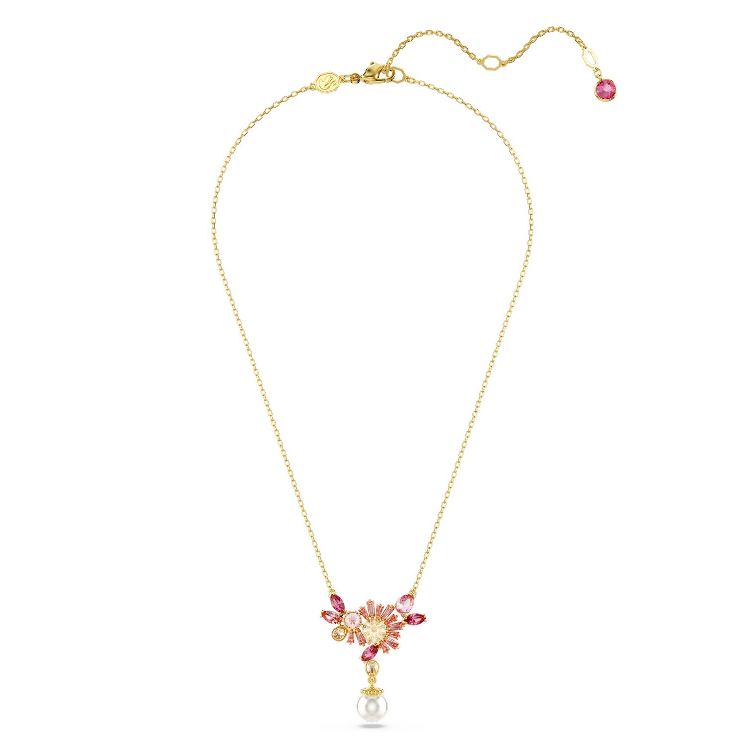 Αυτό το χαρούμενο μενταγιόν είναι εμπνευσμένο από τα εμβληματικά άνθη κερασιάς της Ιαπωνίας. Το κόσμημα με επιμετάλλωση σε χρυσό τόνο είναι περασμένο σε ντελικάτη αλυσίδα και διαθέτει έναν ποικιλόμορφο συνδυασμό από κρύσταλλα φαντεζί κοπής και Swarovski Zirconia σε ζωηρές αποχρώσεις του ροζ και του σαμπανί. Ένα λευκό Crystal Pearl κρέμεται από κάτω, προσθέτοντας ανεπιτήδευτη αιθέρια ομορφιά. Φορέστε αυτό το μενταγιόν μόνο του για να υιοθετήσετε ένα θαυμάσιο στυλ «φυσικής» έμπνευσης ή συνδυάστε το με ένα ασορτί κομμάτι από τη θεσπέσια οικογένεια κοσμημάτων μας Gema Sakura.