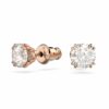 Σκουλαρίκια με καραφάκι Constella, Οτρογγυλή κοπή, Λευκά, Επιμετάλλωση σε ροζ χρυσαφί τόνο