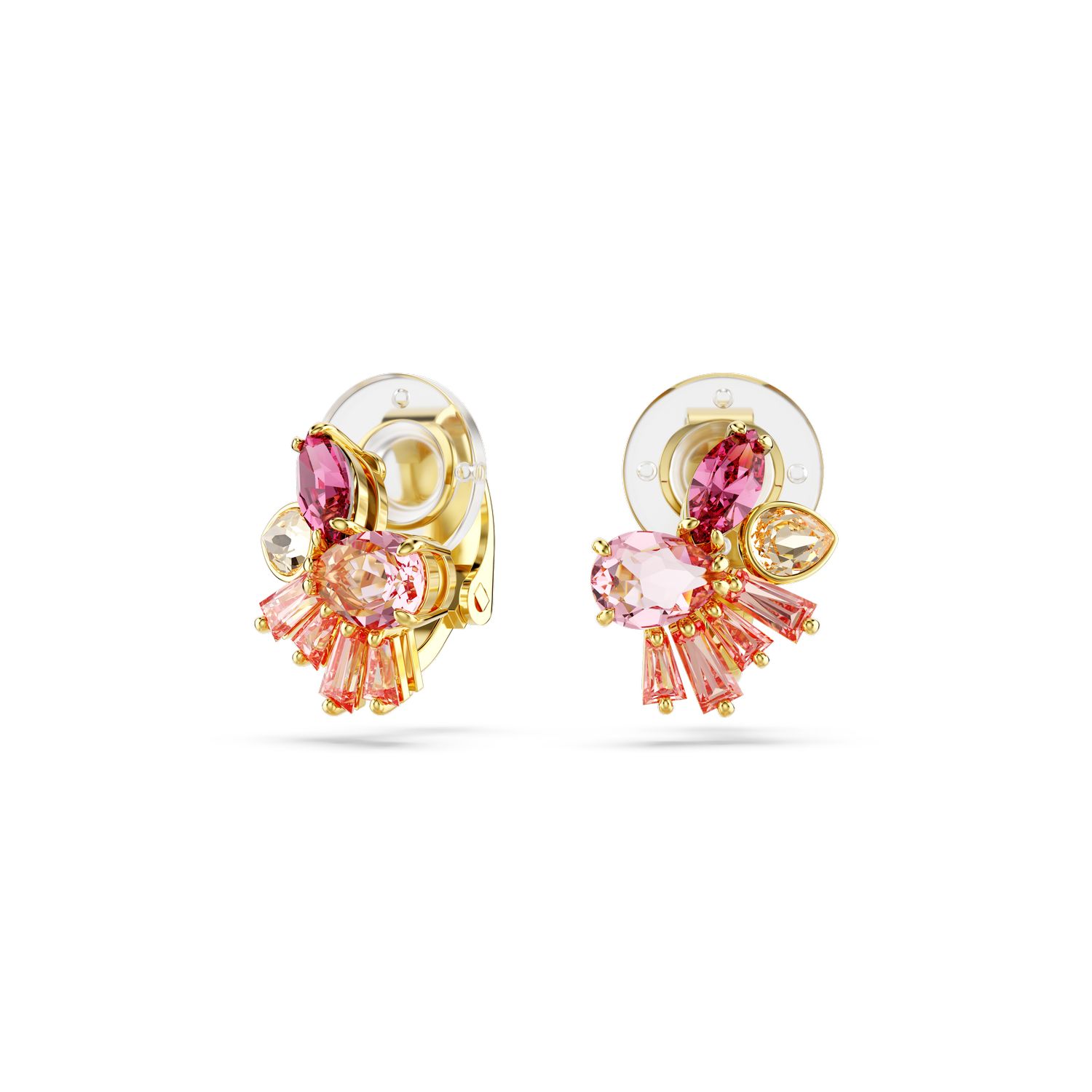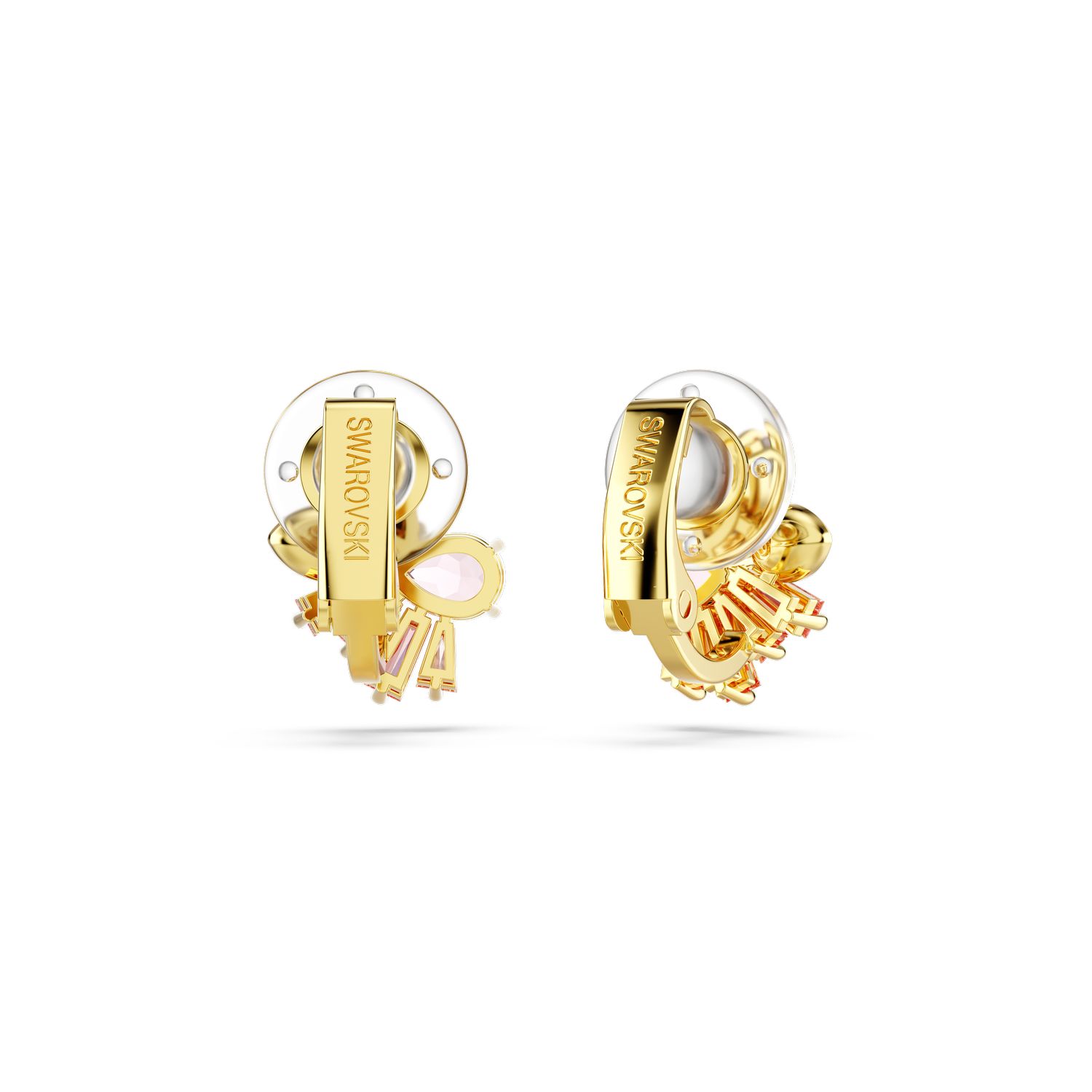 Σκουλαρίκια με κλιπ Gema, Μείξη κοπών, Λουλούδι, Ροζ, Επιμετάλλωση σε χρυσαφί τόνο